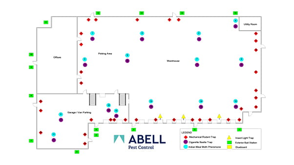 Custom maps of your facility showing the locations and ID numbers of each pest control device.
