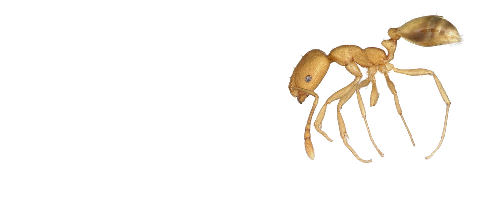 Pharaoh ants are yellow, light brown, to reddish, and measure 1.5-2 mm (1/16 – 1/12 inch) long. Workers are all one size (monomorphic). Their small size makes them difficult to see with a visual inspection.