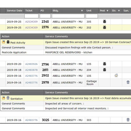 Si vous êtes gestionnaire immobilier, ou même si vous gérez une entreprise avec de nombreux locataires, il est important d’avoir un programme de lutte antiparasitaire sur lequel vous pouvez compter. La plateforme de Rapport multi-unités d’Abell a été conçue pour les personnes qui gèrent des appartements, des copropriétés, des immeubles de bureaux, des logements sociaux ou même des centres commerciaux.
